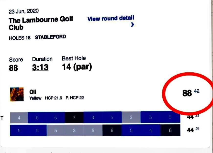 "When I first started with Noel 7 months ago I had just scored 126 and was in a bit of a mess with my game. I have now shot my personal best of 88 from the back tees at Lambourne (6800 yards). I am really really pleased."